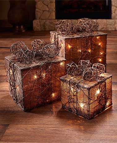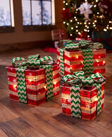-. Title : Sets of 3 Lighted Gift Box Decor