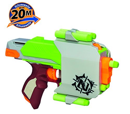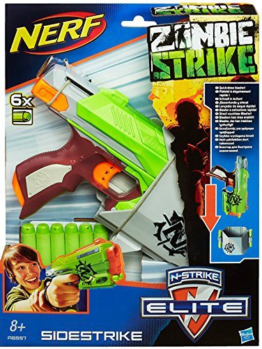 -. Binding : Toy -. Brand : Nerf -. EAN : 5010994767716 -. Feature : Hasbro Nerf Zombie Strike Quick Draw Side strike Blaster And Holster / Move fast Move fast / This quick-fire zombie blaster and integrated holster with dart storage (2) gives you flexibility to gear up easily when battling Zombies / The side strike blaster comes with 6 zombie darts, shoots up to 75 feet, and it's holster is compatible with fire strike Each sold separately / For ages 8+ -. IsAdultProduct : 0 -. Label : Dealfisher -. Manufacturer : Dealfisher -. Model : A6556 -. MPN : A6556 -. NumberOfItems : 1 -. PackageQuantity : 1 -. PartNumber : A6556 -. ProductGroup : Toy -. ProductTypeName : TOYS_AND_GAMES -. Publisher : Dealfisher -. Studio : Dealfisher -. Title : Zombie Strike Quick Draw Sidestrike Blaster and Holster Board Game -. UPC : 653569914709 -. Warranty : No Warranty