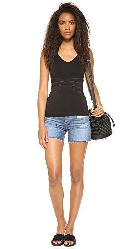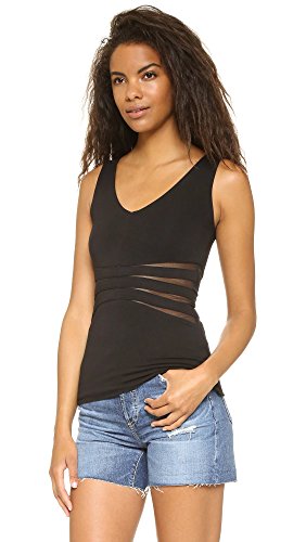 A fitted Bailey44 top with a soft V neckline and wraparound mesh cutouts. Raw hem. Lined.