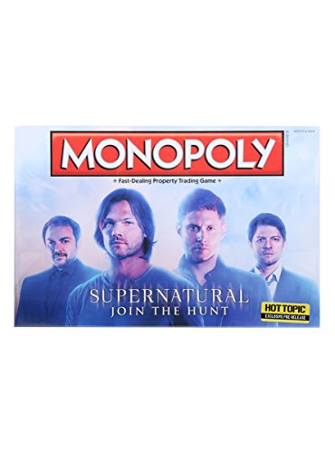 -. Author : USAopoly -. Binding : Toy -. Brand : USAopoly -. Color : BLACK -. EAN : 0700304047205 -. Feature : Custom game board features famous monsters from the Supernatural TV series / 6 Collectible zinc tokens / The perfect game for your Game Night! -. IsAdultProduct : 0 -. ItemPartNumber : MN010361 -. Label : USAOPOLY, Inc. -. Manufacturer : USAOPOLY, Inc. -. Model : MN010-361 -. MPN : MN010-361 -. NumberOfItems : 1 -. PackageQuantity : 1 -. PartNumber : MN010-361 -. ProductGroup : Toy -. ProductTypeName : TOYS_AND_GAMES -. PublicationDate : 2012 -. Publisher : USAOPOLY, Inc. -. Size : One Size -. Studio : USAOPOLY, Inc. -. Title : Monopoly: Supernatural Collector's Edition Board Game -. UPC : 700304047205 -. Warranty : No Warranty