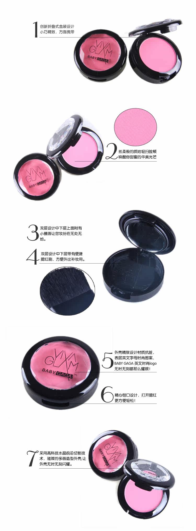 Product introduction super cost-effective Blush Powder, silty fine, no color,easy to create a natural stratification, correction of facial contour. Make face tender nature; natural attractive color, the velvet patterns, attached evenly on the face, like heaven. Given the facial vitality so that the whole makeup natural coordination, also can make the face appear more stereoscopic sense.