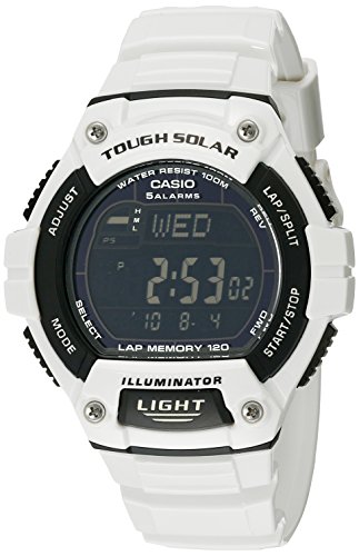 -. Binding : Watch -. Brand : Casio -. Color : White/Black -. Department : mens -. EAN : 0079767920036 -. Feature : Solar-powered white watch with two countdown interval timers, world time, and five daily alarms / 47 mm stainless steel case with mineral dial window and quartz movement with digital display / Features LED light, 1/100 second stop watch, and mute function / Resin band with buckle closure / Water resistant to 100 m (330 ft) -. Label : Casio -. Manufacturer : Casio -. Model : W-S220C-7BVCF -. MPN : W-S220C-7BVCF -. PackageQuantity : 1 -. PartNumber : W-S220C-7BVCF -. ProductGroup : Watch -. ProductTypeName : WATCH -. Publisher : Casio -. Studio : Casio -. Title : Casio Men's W-S220C-7BVCF White Watch -. UPC : 079767920036