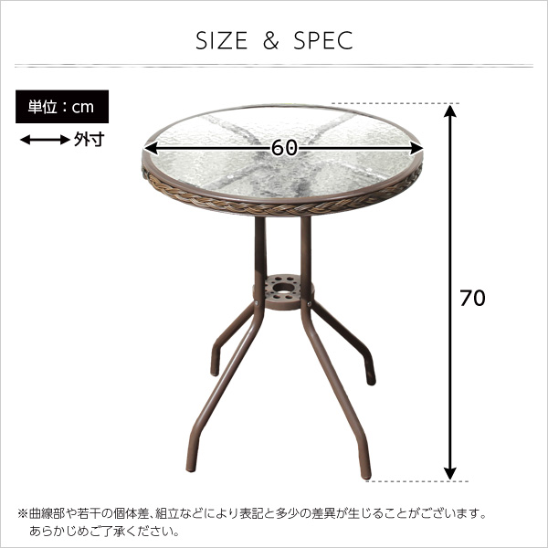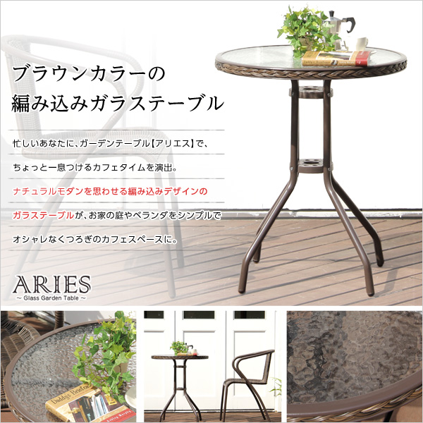 60cm幅ラウンドテーブル【ARIES-アリエス-】(ガラステーブル ガーデニング)