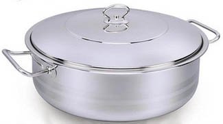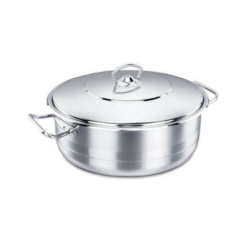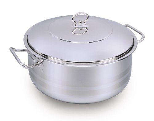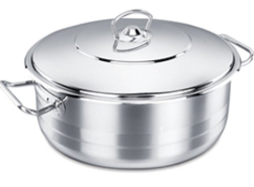 Korkmaz Mega Cookware. Mega cookware have a triplex heavy bounded capsule bottom which allow quick and even heat distribution. Featuring a stainless steel ergonomic handle and a stainless steel lid. It has a high polish attractive exterior. Made from 18/10 Cr-Ni Stainless steel.Feature