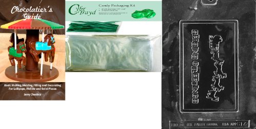 Cybrtrayd Seasons Greeting with Sleigh Chocolate Mold with Chocolatier's Bundle of 25 Cello Bags, 25 Green Twist Ties and Chocolatier's Guide