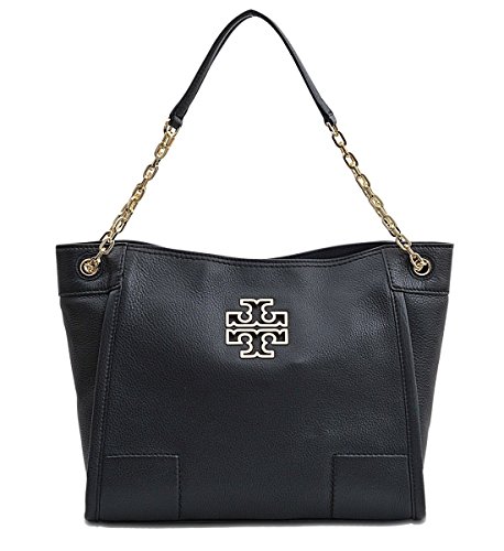 -. Brand : Tory Burch -. Color : Black -. Department : womens -. EAN : 0190041548170 -. Feature : Tory Burch grained leather tote bag with golden hardware. Chain and leather shoulder straps, 8.8" drop. Open top with hidden magnetic closure. Signature double-"T" medallion at top center. Zip-through center compartment divides interior. Logo jacquard lining; one zip pocket. 9.5"H x 11.6"W x 4.7"D. "Britten" is imported. -. MPN : BAG-11858 -. PackageQuantity : 1 -. PartNumber : BAG-11858 -. ProductGroup : Shoes -. ProductTypeName : HANDBAG -. Title : Tory Burch Britten Small Slouchy Tote Bag In Black Style 39057 -. UPC : 190041548170