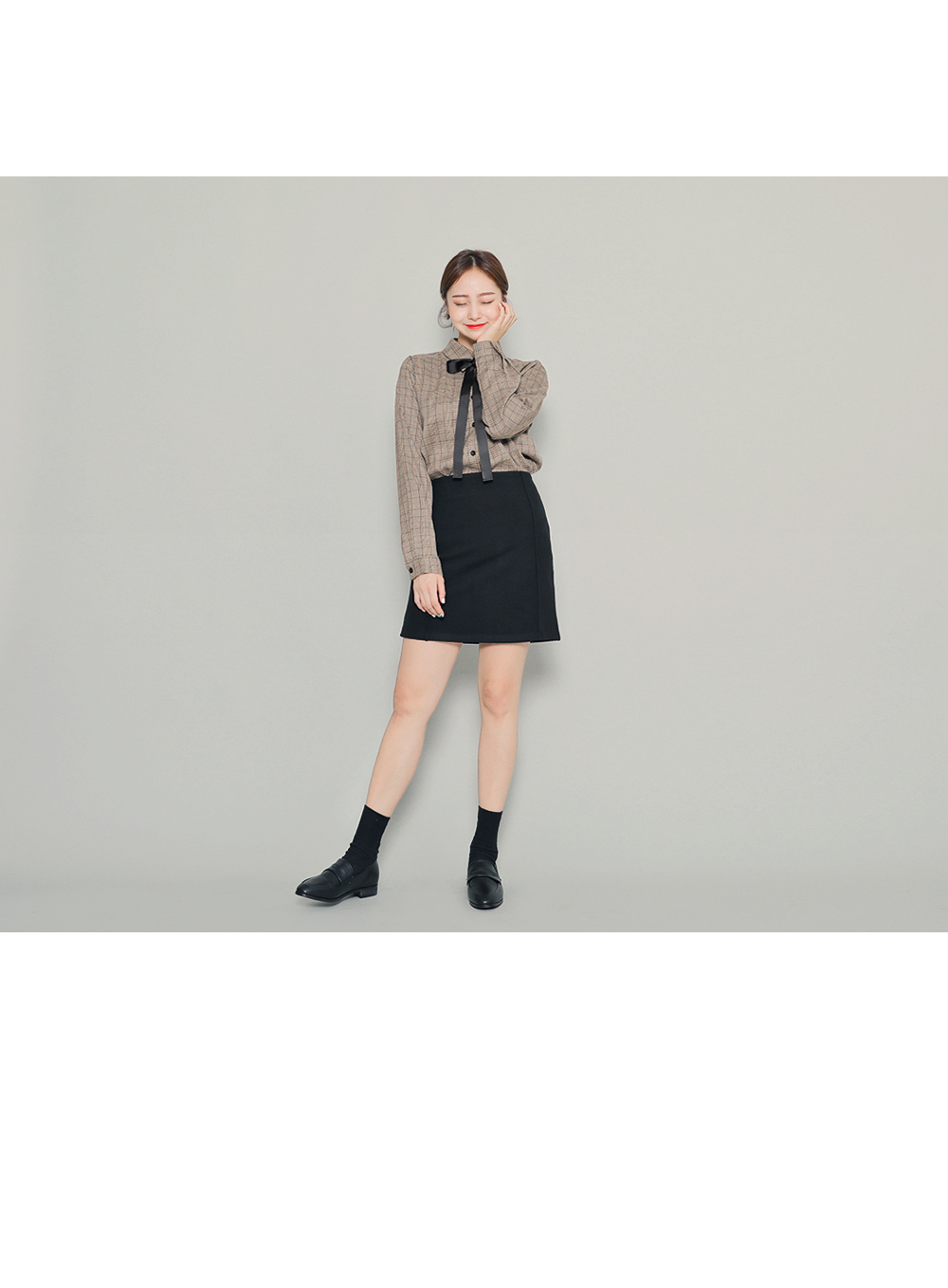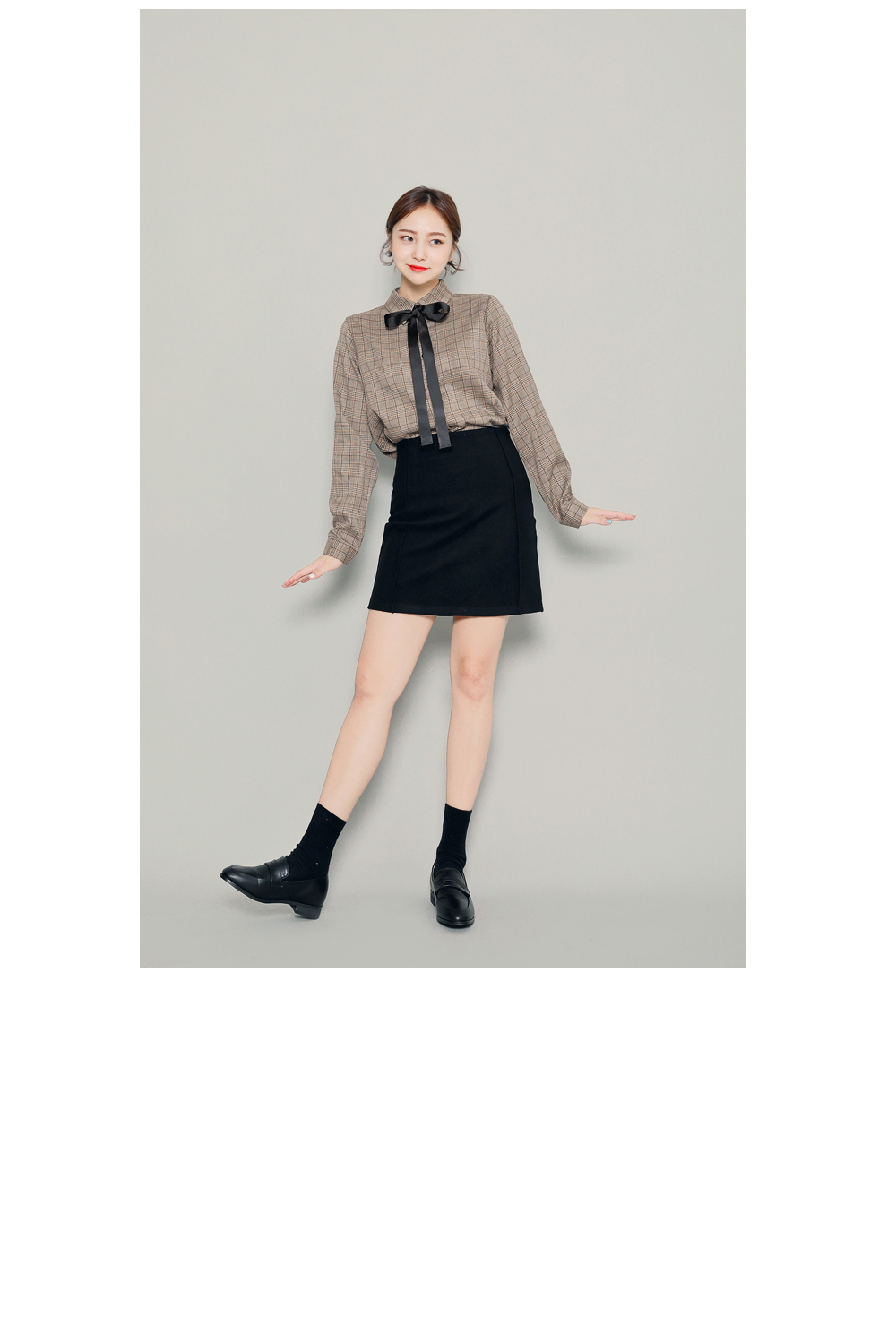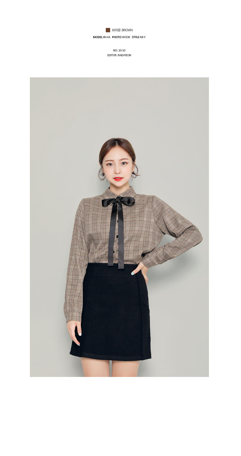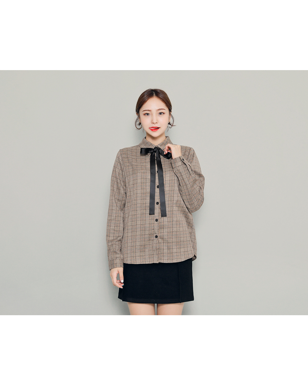 今シーズントレンドのマニッシュなチェック柄が魅力のブラウスです。暖かみのあるブラウンカラーで、首元のリボンを結んでラブリーさをUP!リボンを外して、カジュアルにコーデしてもOK!自分好みのスタイルを楽しめます♬スカートともパンツとも相性の良いデイリーアイテムです。
