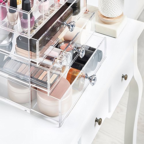Beautify Large Clear Acrylic Makeup Organizer Cube with 3 Drawers and 6 Upper Storage Compartments with Crystal Handles for Vanity Tables 11.8 x 11.8...