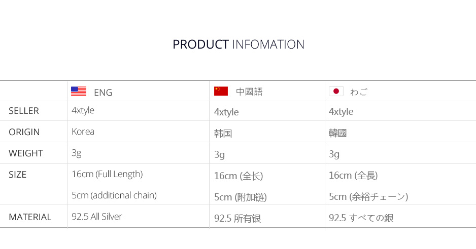 92.5 All Silver 제품으로 알러지 없이 오래오래 간직하세요.