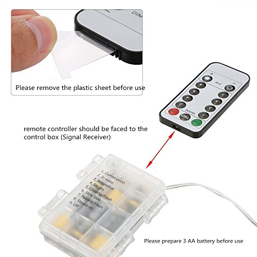 - ✜Low Energy Consumption and Timer: The fairy light is powered by 3 AA batteries(not included) and keeps at a low temperature. Pressing the Timer button to open the auto-timer (6 hours on, 18 hours off).