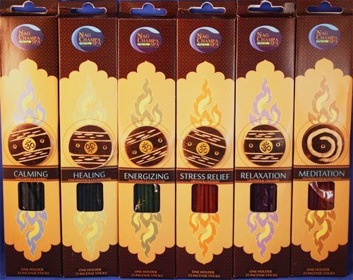 Aromatherapy Incense Sampler- 25 Sticks X 6 Packs with Free Holders - Calming, Healing, Energizing, Stress Relief, Meditation, Relaxation