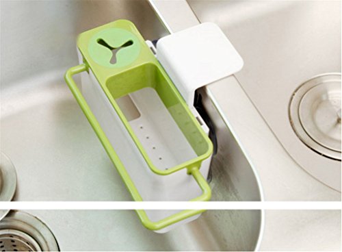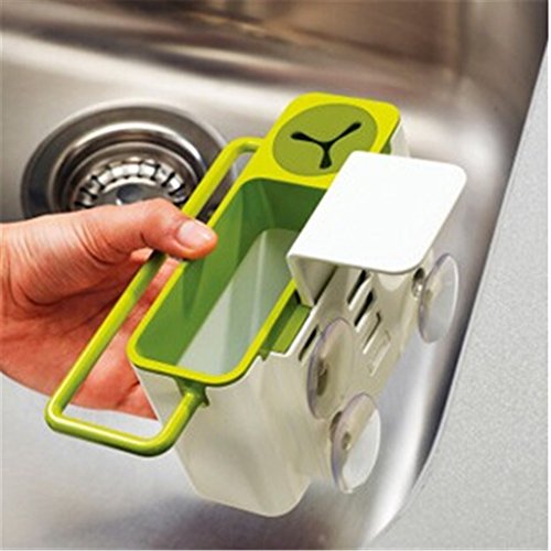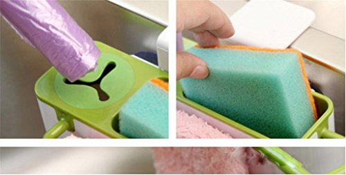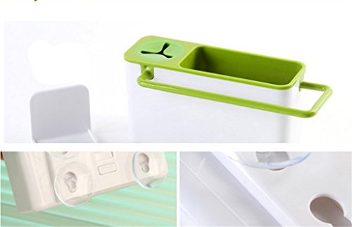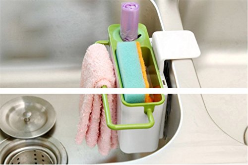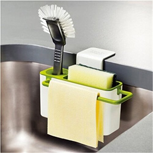 -. Feature : Attractive and practical sink caddy,Keeps sink area neat and organized.Attaches securely inside sink / Main body of the unit provides ample space for storing a sponge and brush,ventilated sponge storage for quick-drying and minimal bacteria growth / Integrated rail provides hanging and drying space for damp dishcloths,no-slip grip. / Draining plate within the base creates an area for placing wet sponges; concealed reservoir beneath the unit collects any drained water / Entire unit can be dismantled for easy cleaning and is dishwasher safe; , masters of form and function