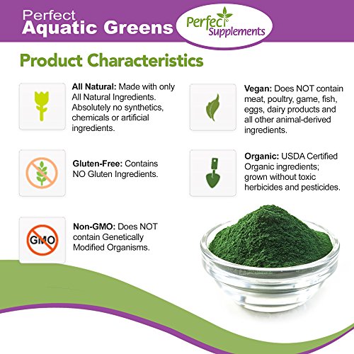 Perfect Aquatic Greens is a greens powder made of 50% Spirulina and 50% Chlorella. Perfect Spirulina and Chlorella are pure, vitamin-rich microscopic freshwater algae. Aquatic Greens are rich in protein, vitamins, and minerals. Just add water or juice to a shaker with this nutrient-rich Spirulina and Chlorella powder for an instant natural energy drink.Feature