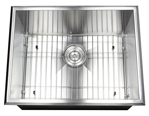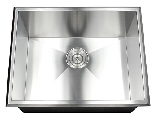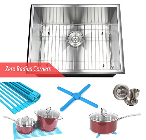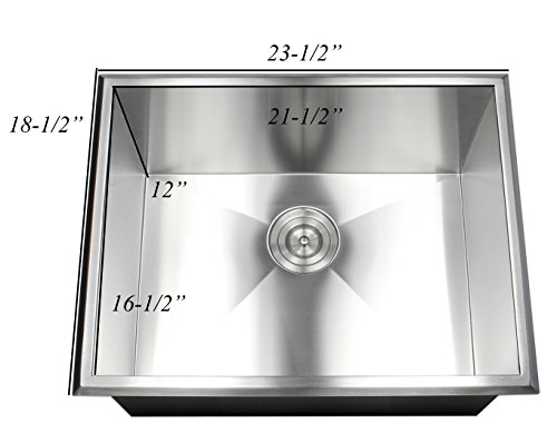 23 Inch Zero Radius Design 16 Gauge Topmount Drop In Over the Counter Large Single Bowl Stainless Steel Kitchen / Utility / Laundry Sink with 12" Deep Premium Package