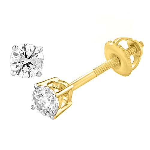 -. Title : IGI-Certified Round-Cut Diamond 14k Solid Gold Stud Earrings (1/4 cttw, I-J Color, I2 Clarity)