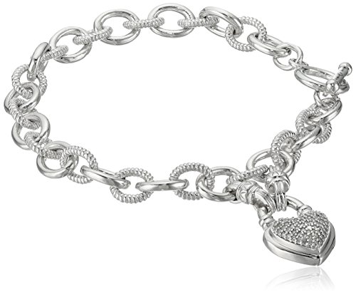 -. Title : Sterling Silver with White Diamond Heart Tag Charm Bracelet (1/4cttw, I-J Color, I3 Clarity), 7.5"