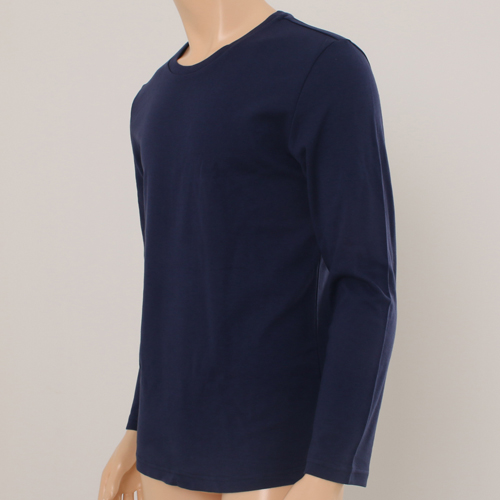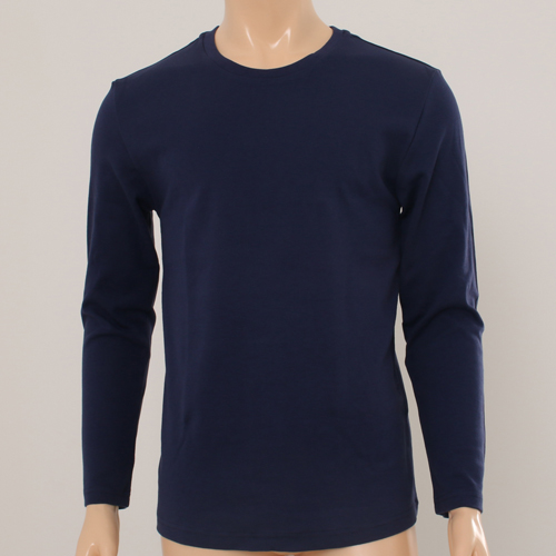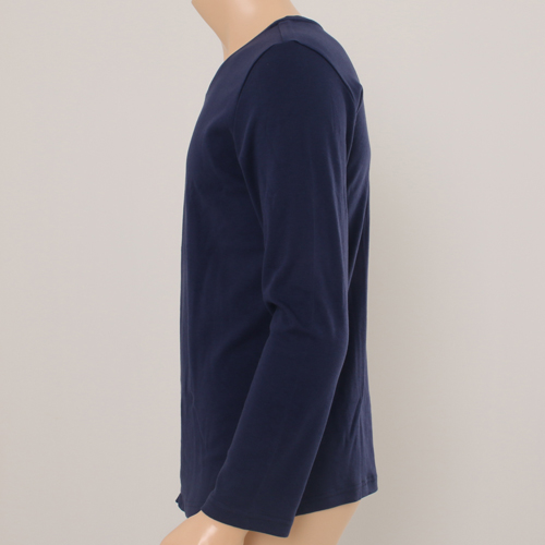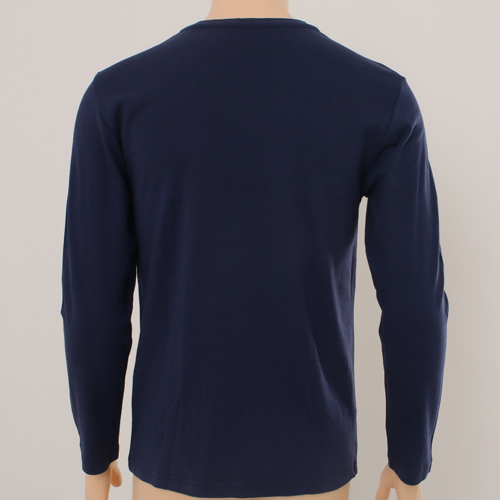 네이비 칼라의 솔리드 상의로 원단이 도톰하고 보온성 이 뛰어나고 촉감이 부드러운 남자 라운지웨어. 베이직 한 티셔츠 디자인으로 뒷목안에 손바이어스로 편안함 및 포인트를 주었으며 겨울철 편안하게 착용할 수 있는 라운지웨어 제품.