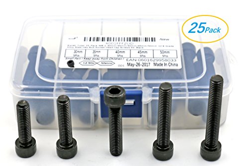 iExcell Total 25-Pack M8 x 30mm/35mm/40mm/45mm/50mm 12.9 Grade Alloy Steel Hex Socket Head Cap Screws Kit ,Black