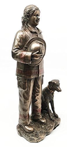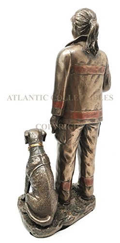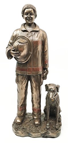 Firewoman Lady Fire Fighter On Duty With Rescue Dog Figurine Statue