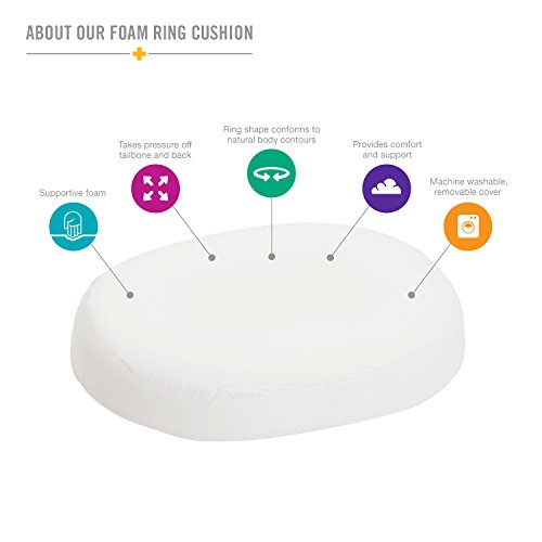 DMI Molded Foam Ring Donut Seat Cushion Pillow, 18 x 15 x 3 inches, White