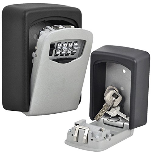 -. Title : BYBOO Outdoor Wall Mounted Key Safe Storage Box 4 Digital Push Button Combination Coded Weather Resistant Spare Sharing Keys for Home Garage Workplace - Grey Black
