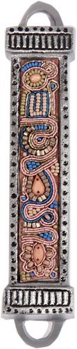 Yair Emanuel Mezuzah Scroll Holder Case For Door Lintel - Judaica Beads Embroidered Pink (MZG-5)