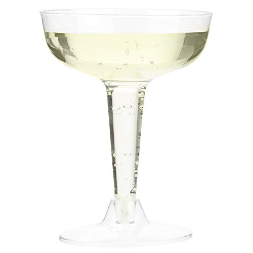 Pack of 20 CLEAR 4 oz. Plastic 2-Piece Champagne / Coupe Glass Flairware w/ Signature Party Picks