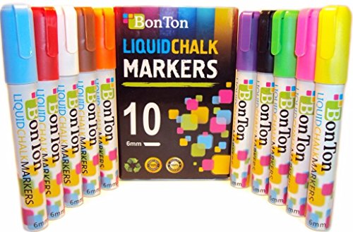 - TEN VIBRANT NEON COLORS - Bon Ton offers a pack of 10 chalk marker pens liquid chalk ink which Bright for Bistro Boards, White Board, Kids Art Board Menu Boards