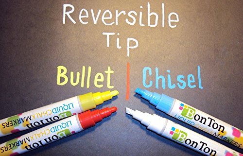 - ★EASY TO CLEAN UP - The brilliant liquid chalk colored paint Ink in each Bon Ton Chalk Marker is completely dust-free which makes cleanup an easy task. Simply grab a damp cloth and wipe the chalk away without smearing, streaking, smudging or messes.Food Safe.ONLY SUITABLE FOR NON POROUS SURFACES