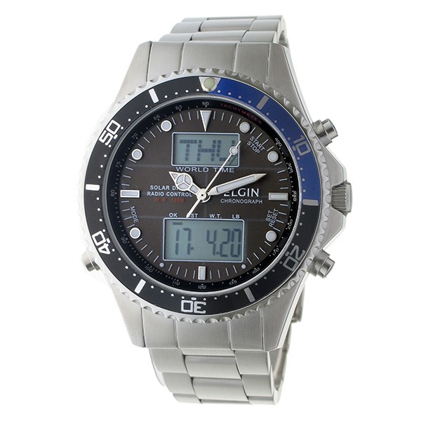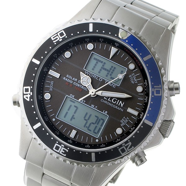 エルジン ELGIN 電波 ソーラー メンズ ウォッチ 時計 グレー