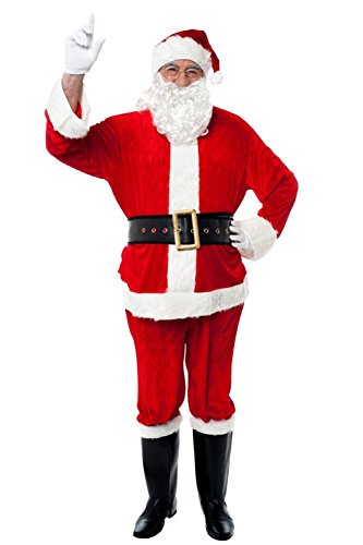 -. Feature : Regal Plush Santa Suit Includes: 1 x satin lined coat with white trim, 1 x pants, 1 x santa hat, 1 x santa mustache, 1 x belt / Black vinyl belt with a metal buckle, match the regal santa suit for the Christmas / SIZE: Shoulder Length 19.6'', Sleeve Length 22.4'', Coat Length 29.9'', Waist 41.7'', Pants Length 38.2'' ; Belt can be adjusted from 29.9'' to 45.6'', belt width 3.5'' / Dry Clean Only / With this high quality comfortable and durable Christmas costume suit, as a gift for your father or husband, you will get a happy Christmas