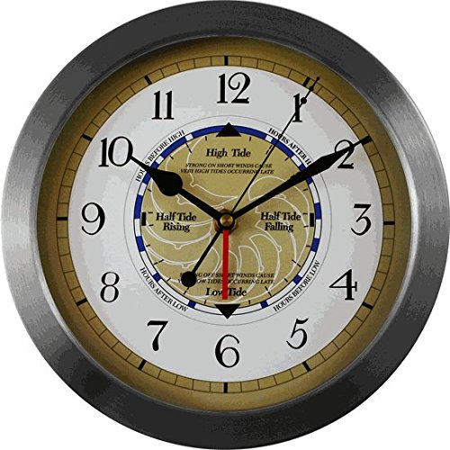 An easy-to-read dial indicates time to high and low tides, as well as to the ebbing and flooding half tides. Set this clock to wherever you want to track the average tide cycle-for example, your favorite beach, harbor, or fishing area.