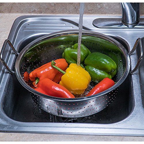 Qualways Stainless Steel Jumbo Size Vegetable Colander, 8 Quart Vegetable Strainer