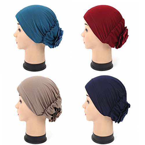 Product Description4 Pack Muslim Cap ,Chemo Hat,Turban Headwear Beanie Scarf Hat0