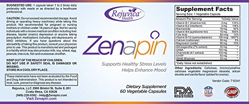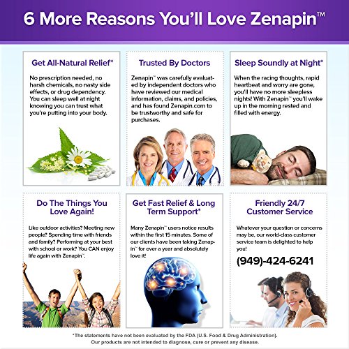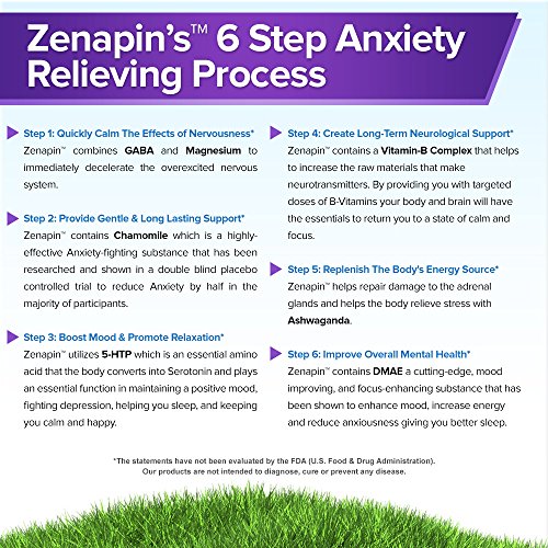 -. Binding : Health and Beauty -. Brand : Zenapin Anxiety Remedy -. EAN : 0638845660051 -. Feature : DON'T LET ANXIETY KEEP YOU FROM ENJOYING YOUR LIFE: our proprietary formula contains SIX anxiety-fighting ingredients to help reduce your stress, anxiousness, and panic in both the short and long term. / REDUCE ANXIETY AND IMPROVE YOUR MOOD: While ingredients like GABA and Chamomile have been shown to create a calm feeling, ingredients like 5-HTP and DMAE have been shown to IMPROVE your mood. / ALL-NATURAL INGREDIENTS WITHOUT NASTY SIDE EFFECTS: Zenapin is a combination of six all-natural ingredients, which have been extensively researched and PROVEN to promote calmness, reduce anxiety, and improve the overall mood of individuals who took them. Best of all, they don't come with the negative side effects that are commonly associated with anti-anxiety drugs. / ADDITIONAL BENEFIT - APPETITE CONTROL: 5-HTP is naturally produced in your body as it makes serotonin, and serotonin is an important hormone not only for our mood, but it has been shown to suppress hunger as well, especially carb cravings. / 30 DAY 100% 'NO QUESTIONS ASKED' MONEY BACK GUARANTEE: If you're unsatisfied with our product for whatever reason, we'll give you a full refund with no questions asked. Even with this guarantee, our return rate is still only 2.2%. -. Label : Zenapin Anxiety Remedy -. LegalDisclaimer : The products and statements made about specific products on this web site have not been evaluated by the United States Food and Drug Administration (FDA) and are not intended to diagnose, treat, cure or prevent disease. -. Manufacturer : Zenapin Anxiety Remedy -. MPN : ZP-PAK1 -. PackageQuantity : 1 -. PartNumber : ZP-PAK1 -. ProductGroup : Health and Beauty -. ProductTypeName : HEALTH_PERSONAL_CARE -. Publisher : Zenapin Anxiety Remedy -. Studio : Zenapin Anxiety Remedy -. Title : Zenapin: Top All-Natural Anti-Anxiety Supplement with SIX Stress-Relieving Ingredients - GABA, Magnesium, DMAE, Chamomile, 5-HTP, and Ashwagandha and B-Vitamins -. UPC : 638845660051