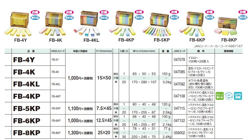 x 40 books input FB-5KP 100 pieces NICHIBAN point memo recycled paper series Business Pack 7.5 x 45mm pastel color mixing line (japan import)