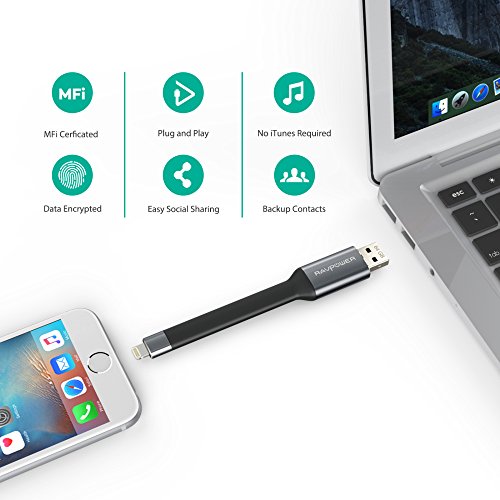 FAST TRANSFER & CHARGING: AUTHORIZED exFAT, enables you transfer individual files larger than 4GB. Speedily transfer files between an iOS device and the RAVPower iPhone/iPad Flash Drive; also acts as a charging cable for your iPhone and iPad; Experience up to 80 MB/s reading and 30 MB/s writing speed with the USB 3.0 port
