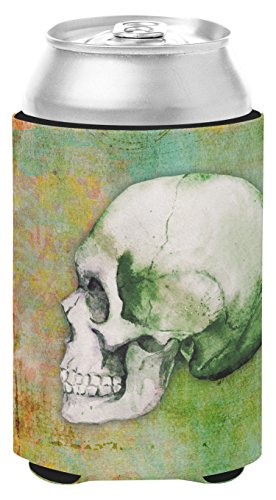 Caroline's Treasures Day of The Dead green Skull Can or Bottle Hugger, Can Hugger, Multicolor