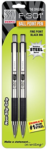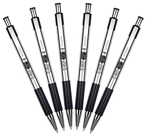 -. Title : Zebra F-301 Stainless Steel Retractable Ballpoint Pen, 0.7mm, Black, Pack Of 6,