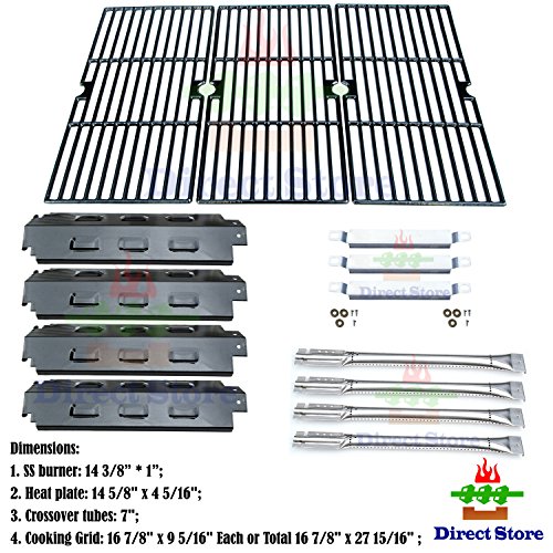 Direct store Parts Kit DG158 Replacement Charbroil 463420507,463420509,463460708,463460710 Gas Grill(SS Burner+SS Carry-over tubes+Porcelain Steel Heat Plate+Porcelain Cast Iron Cooking Grid)