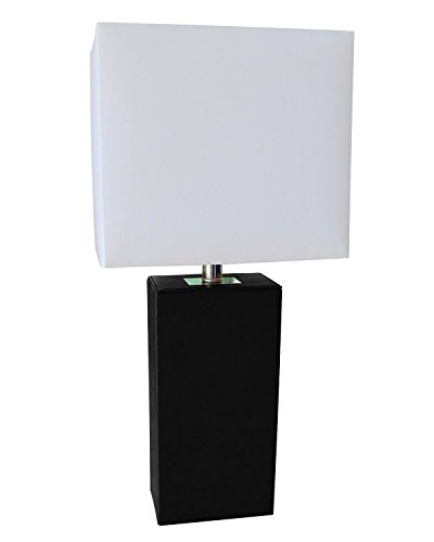 Elegant Designs LT1025-BLK Modern Genuine Leather Table Lamp, Black