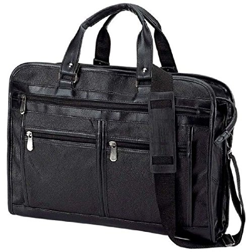 -. Title : Purplebox Black Solid Leather Portfolio Briefcase Attache Case Laptop Satchel Computer Bag