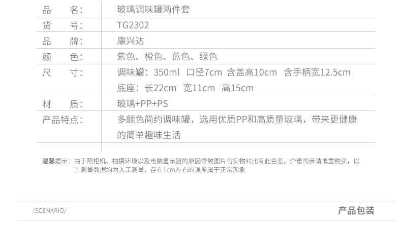 此款玻璃调味罐不耐高温,用清水进行清洗即可,避免爆裂