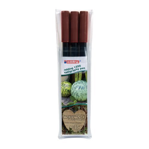 -. Feature : CALLIGRAPHY PEN SET by EDDING NEW COLOUR: DARK BROWN / 3 Nib Sizes - 2mm / 3.5mm / 5mm / Comes in Handy Wallet of 3 Pens / Smooth Flowing Lightfast Water Based Ink. Ideal for Lettering & Creative Writing / For Use by the Profesional or Novice