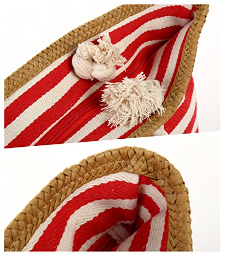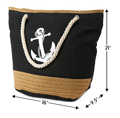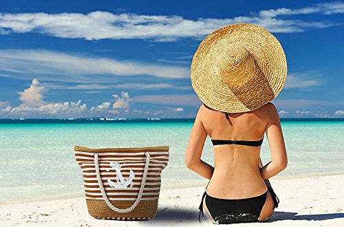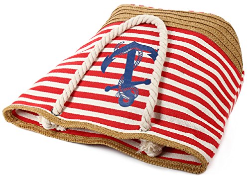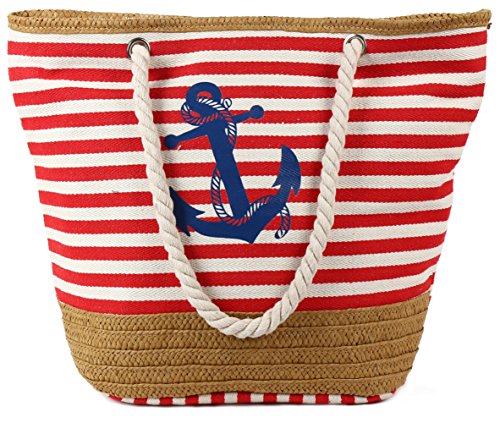 Pulama Womens Large Beach Tote Canvas Shoulder Bag Striped Anchor Summer Handbag Top Handle Bag Straw Beach Bag Eager Red Anchor