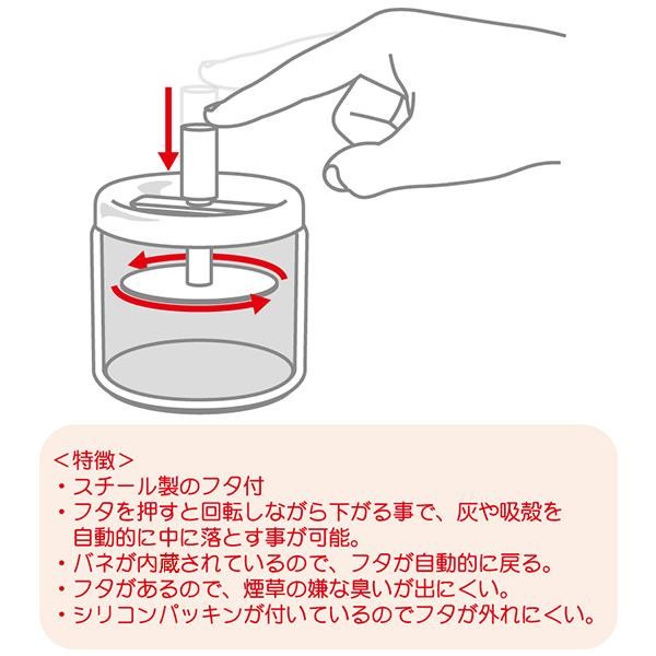 上からハンドルを押すと、回転しながら下がり、灰や吸殻を自動的に中に落とす事が可能です。