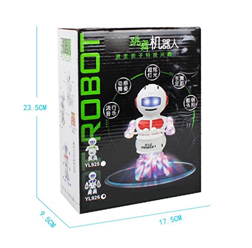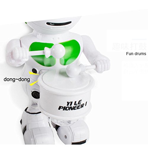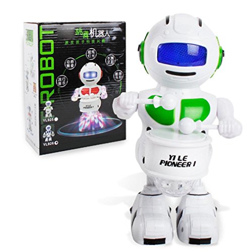 -. Feature : Item: Fun Dancing Robot Electronic Toys With Music Lightening Toys Gift For Kids Children / Features: Battery Operated,Flashing,Sounding,walking,Drum / Dimension: 23.5*14.5*12.5cm / Age Range: > 5 years old / Battery: 1.5V (NOT INCLUDED)