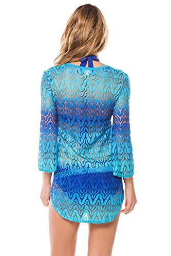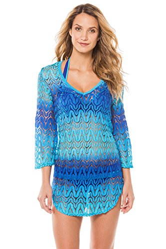 Product DescriptionOmbre crochet tunic with v-neck and 3/4 length sleeves.0