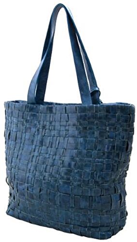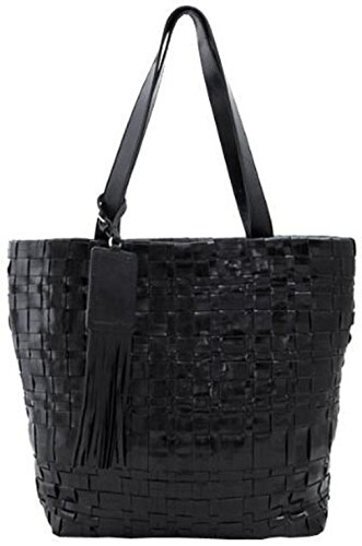 Lush Leather Woven Tassel Double Handle Black Shopper Tote Bag