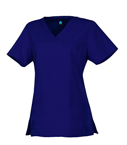 Gravity By Maevn Women's Sporty Princess Seam V-Neck Solid Scrub Top Small Galactic Blue